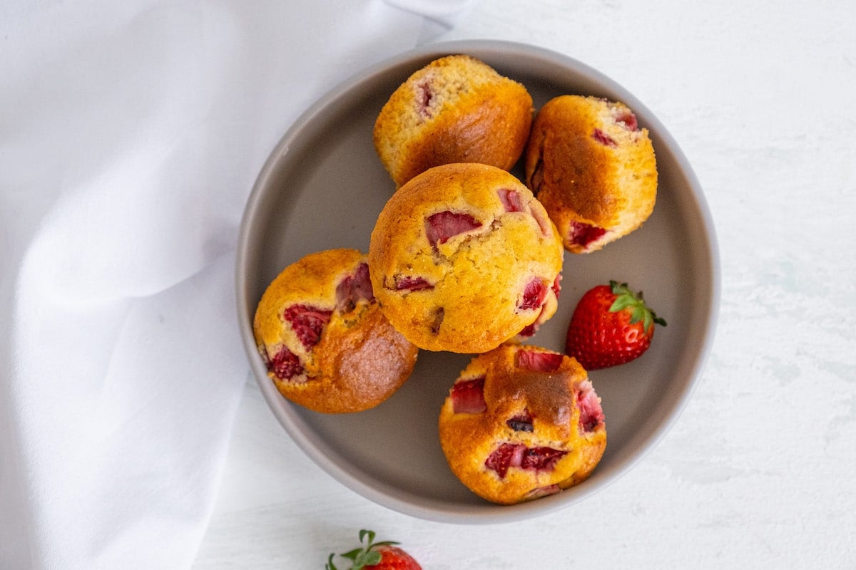 For a vegan and/or egg-free option, use non-dairy milk and a vegan egg replacer in place of eggs for this strawberry muffins recipe.